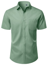 Alimens & Gentle Mens Button Up Shirt Stretched Wrinkle Free Short Sleeve Dresses Shirt For Casual